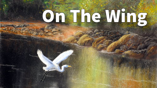Gracefully the egret wings its way over the water and lands on the water’s edge. While it waits to catch its lunch we will quickly paint it in pastel.