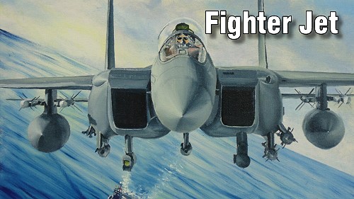In this aviation art tutorial you will paint a dramatic scene of an F-15 Strike Eagle fighter jet aeroplane during ascent with an aircraft carrier in the distance.