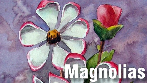 Magnolias are very popular flowers. There are many different species – from small bushes to enormous trees. The flowers also range from small to very large. Some never open fully while other open up completely. In this class you will paint one of the large open flowers in watercolour.