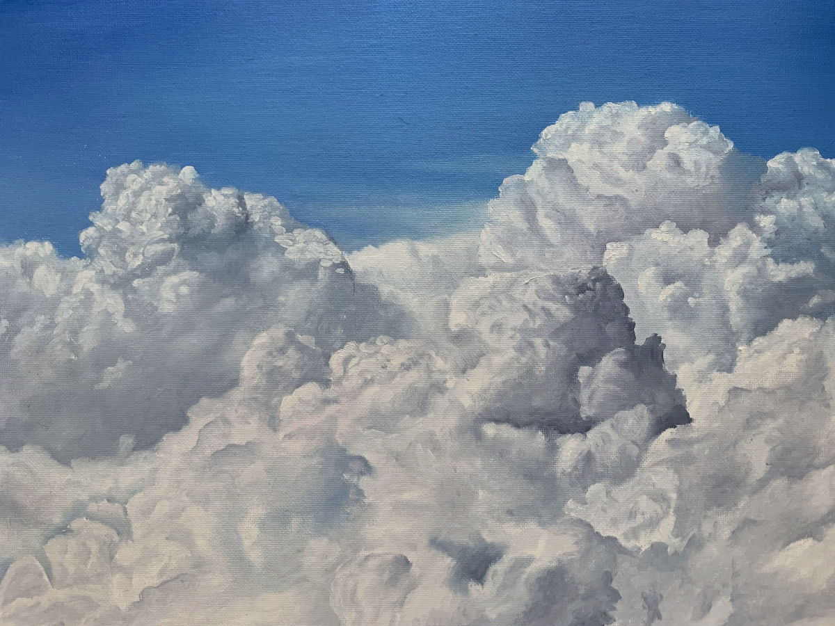 In this real time paint along class we will paint realistic clouds in oil. During the class you will learn : How to mix realistic sky and clouds colours How to paint the sky How to paint misty clouds How to paint billowing clouds How to create depth and distance in the clouds and much more… For the class you will need : 1) a 16″ x 12″ canvas (roughly 400mm x 300mm). 2) Set of bristle brushes 3) Finer liners and fine round brushes 4) 1cm (0.5″) Soft Filbert Brush 5) Painting Knife 6) I estimate using these colours during the lesson : Titanium White, Cerulean Blue, Paynes Grey, French Ultramarine, Cadmium Red.