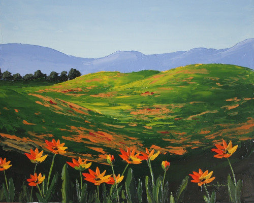 There is nothing like spring time. You can smells the freshness and new life in the air. This time of the year is the most inspiring of all for artists. Especially when you happen to drive past a meadow briming with the colours of spring. During the class you will learn : 1) How to paint rolling meadows 2) Show flowers receding into in the distance 3) How to paint close up flowers in an impressionistic style by using the knife 4) and lots more…