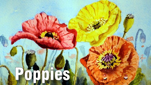 Poppy Day is known all over the world in remembrance of WW1 Armistice Day. Most gardens have poppies to brighten up the area. They also make wonderful flower arrangements. Most of all they are very popular with artists, hence you will be painting a group of them in watercolour.