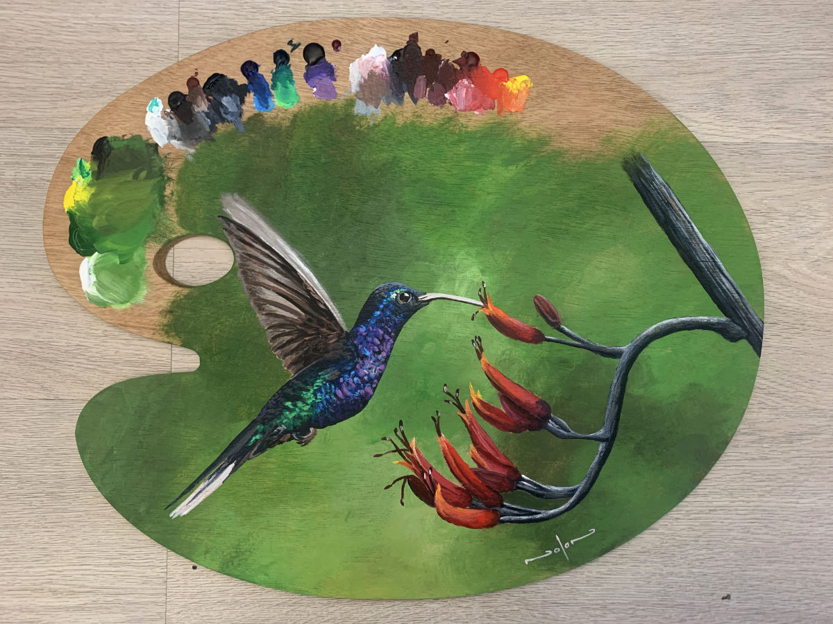 In this real time paint along class you will learn to paint a hummingbird. I will be painting onto a wooden palette, but you can follow along on a canvas if you prefer.